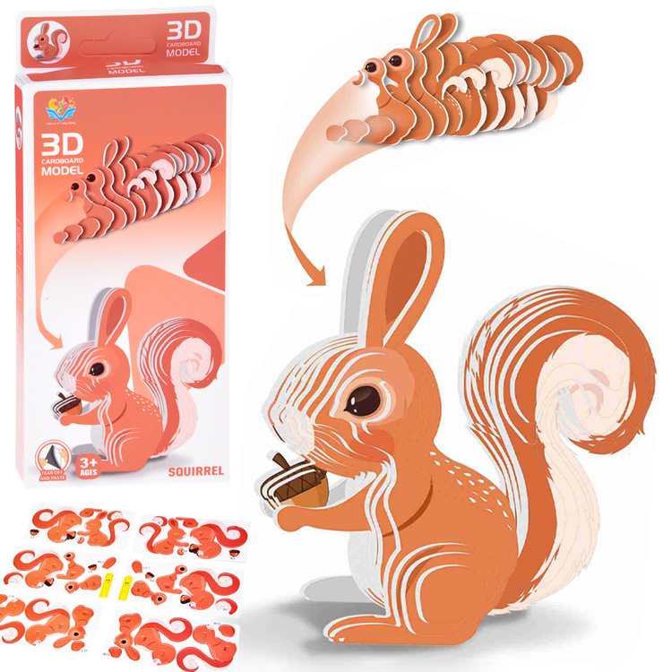 Kartonové 3D puzzle Veverka je zábavná kreativní skládačka, která dětem umožní vytvořit trojrozměrný model této oblíbené lesní postavičky. Díly jsou vyrobeny z pevného, barevného kartonu a snadno se spojují podle návodu uvedeného na obalu – bez nutnosti lepidla či nůžek.
