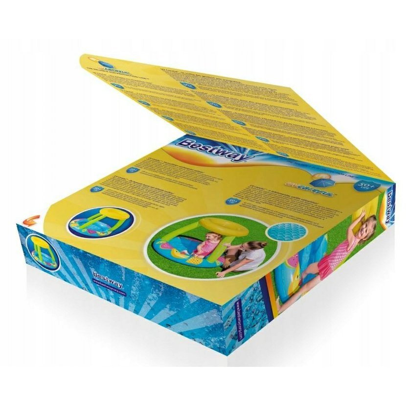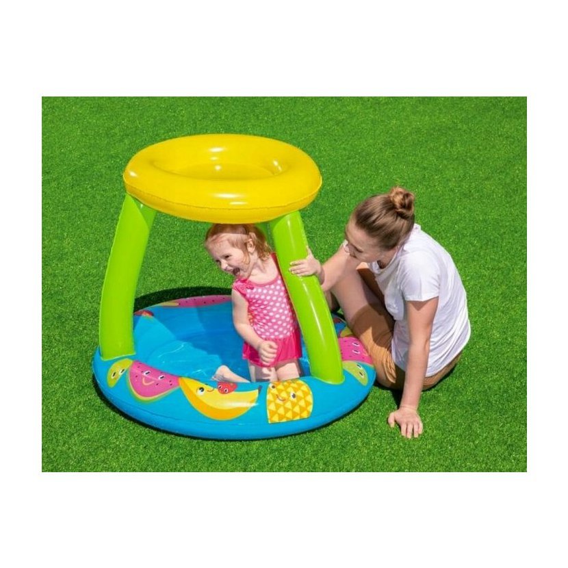 Dětský bazén se stříškou proti slunci poskytuje spoustu zábavy pro každé dítě. Okouzlující barvy rozveselí každé dítě a poskytne mu spoustu zábavy. Bazének se střechou chrání dítě před přímým slunečním zářením. Dno bazénu je nafukovací, bazén je vyroben z odolného materiálu PVC o tloušťce 0,22 mm a je chráněn bezpečnostním ventilem před vyfouknutím.