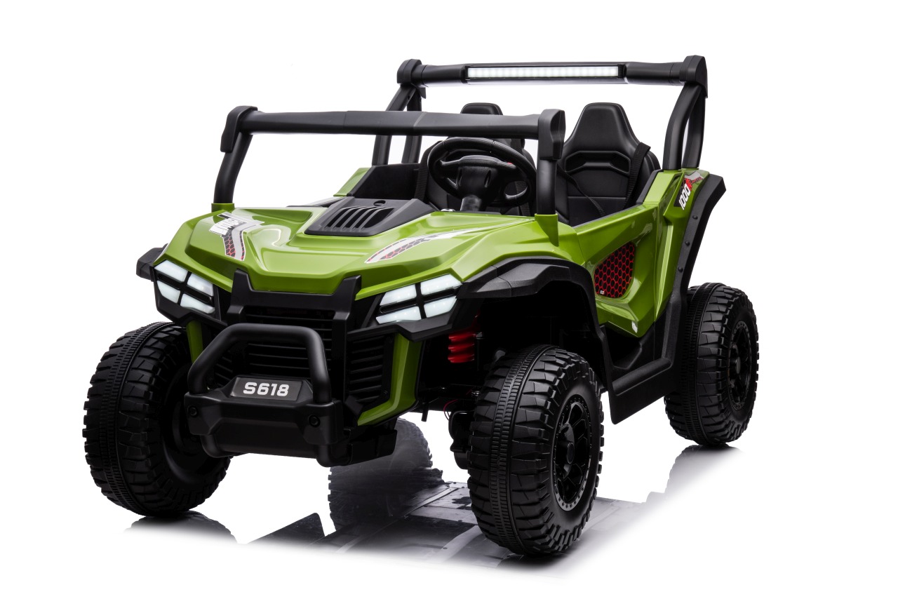 Dětské elektrické autíčko Buggy Gravity 4x4 v zelené barvě je velké terénní vozidlo určené pro zábavnou jízdu na zahradě i na nezpevněných cestách. Díky vysokému podvozku, velkým kolům a silnému pohonu nabízí stabilní a pohodlnou jízdu.