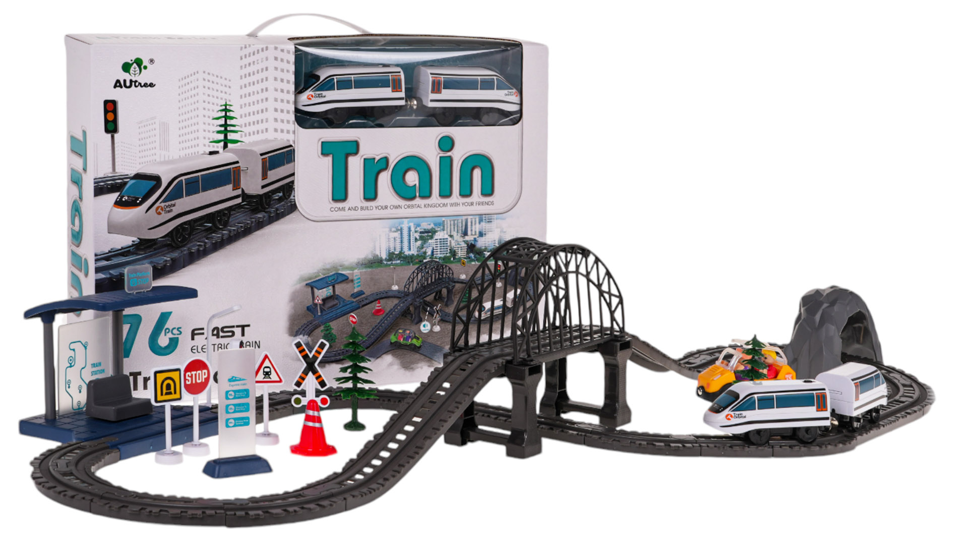 Vytvořte si vlastní železniční svět s kolejovou dráhou se stanicí – 76 dílů! Tato sada nabízí nejen klasické koleje s mostem a tunelem, ale také vlak s magnetickými vagónky a speciální doplněk – taxi s otevírací střechou a pohyblivými figurkami.
