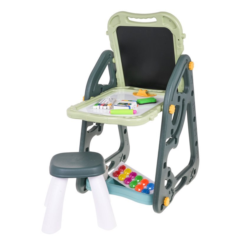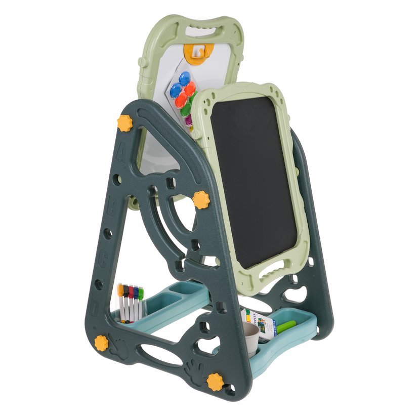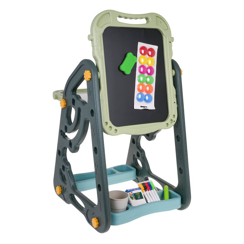 Oboustranná magnetická tabule pro děti s plochou na křídu i suché mazání fixem. Součástí jsou magnetická písmena, číslice a výukové hry. Skvělá pro kreativní i vzdělávací hry.