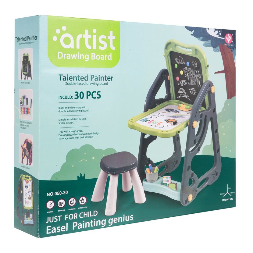 Oboustranná tabule pro Vaše dítě. Z jedné strany je magnetická a na druhé straně Vaše dítko využije křídy. Snadno se přetáčí o 360°. U dítěte tak podporuje logické myšlení, kreativitu, manuální…