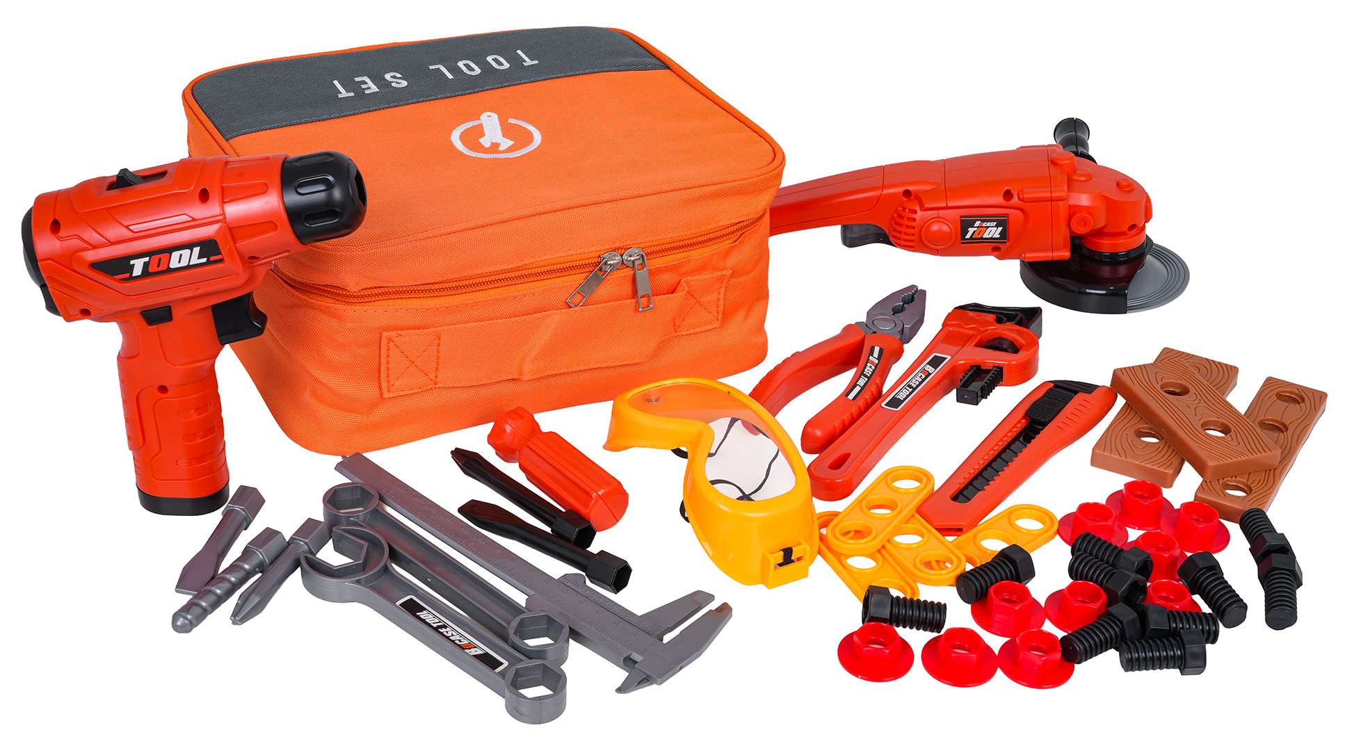 Dětská sada nářadí s taškou potěší všechny malé kutily. Obsahuje 42 dílů, včetně funkční vrtačky na baterie, brusky, klíčů, kleští, šroubků a dalších doplňků. Všechny prvky jsou vyrobeny z kvalitního plastu a bezpečné pro děti.