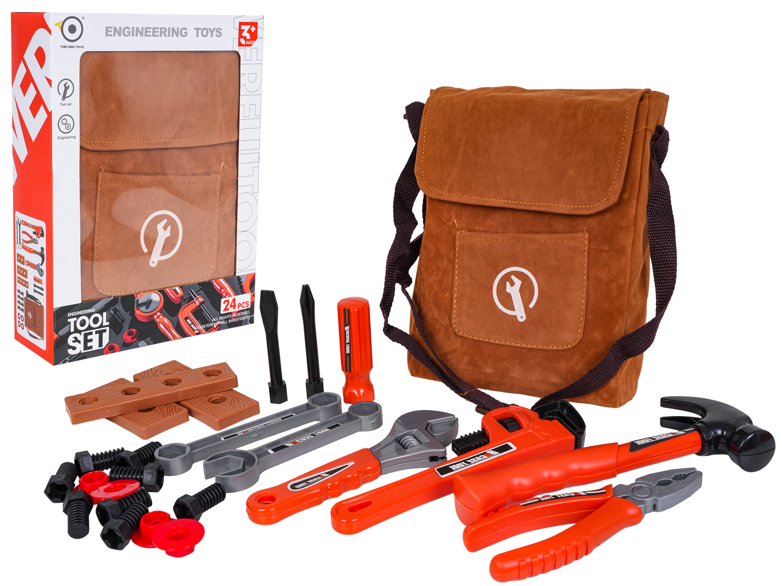 Dětská sada nářadí s taškou přes rameno je ideální hračkou pro malé kutily. Obsahuje 24 dílů vyrobených z kvalitního plastu s realistickým vzhledem. Všechny součásti se vejdou do praktické tašky s nastavitelným popruhem, díky které si děti mohou nářadí vzít kamkoli s sebou.