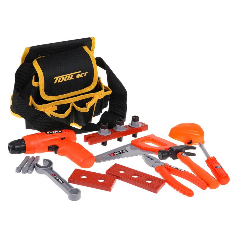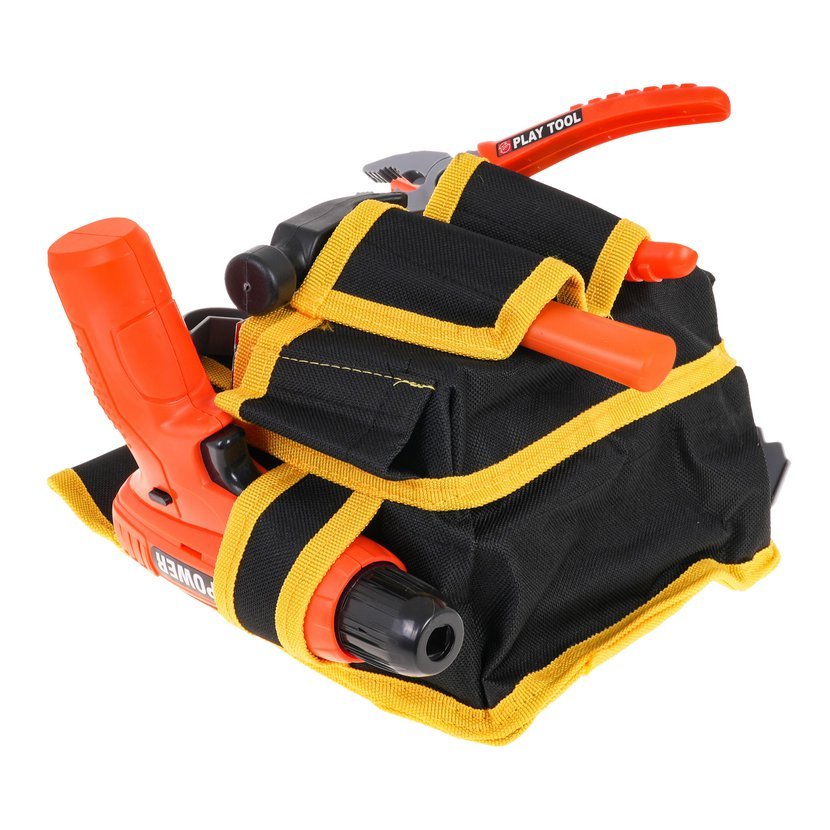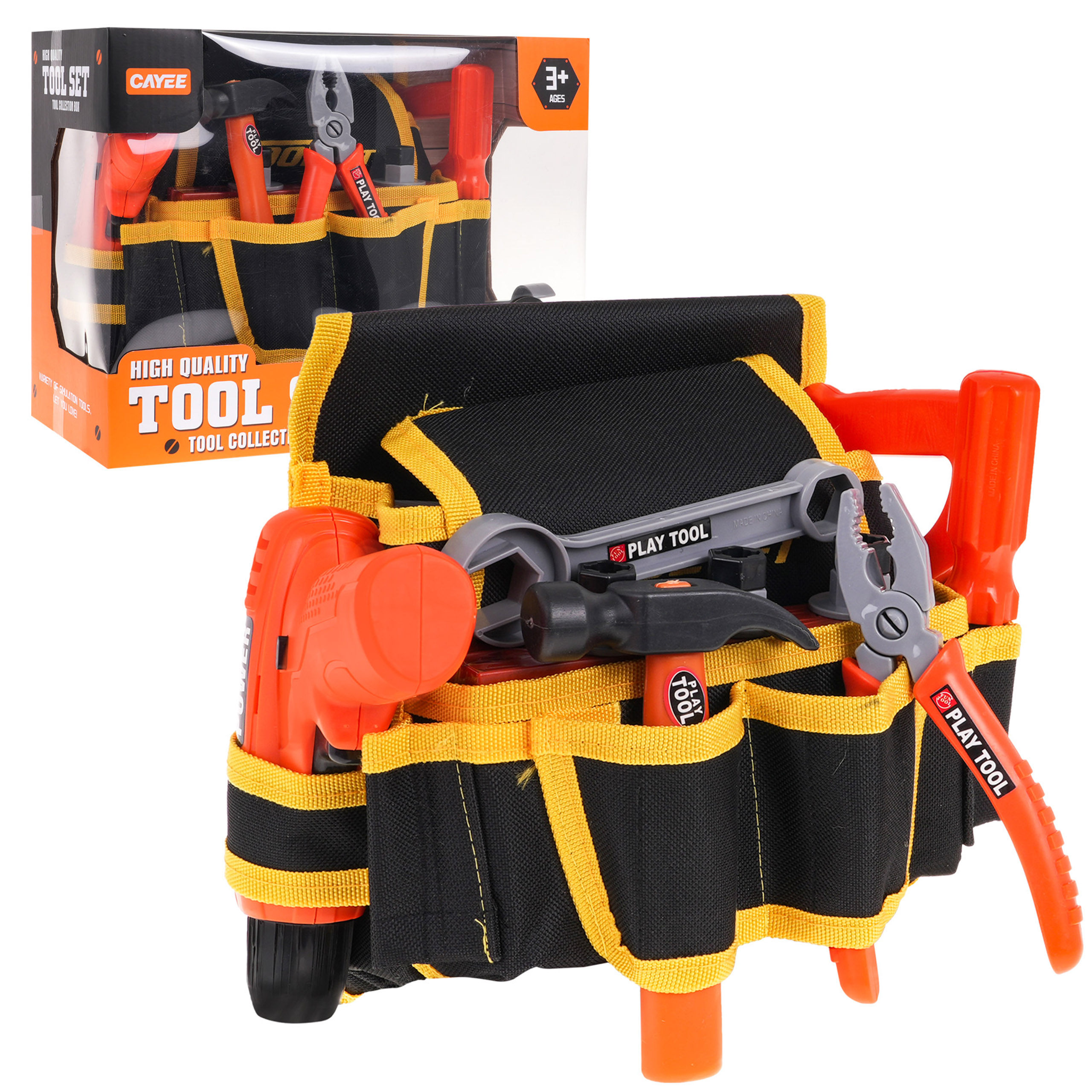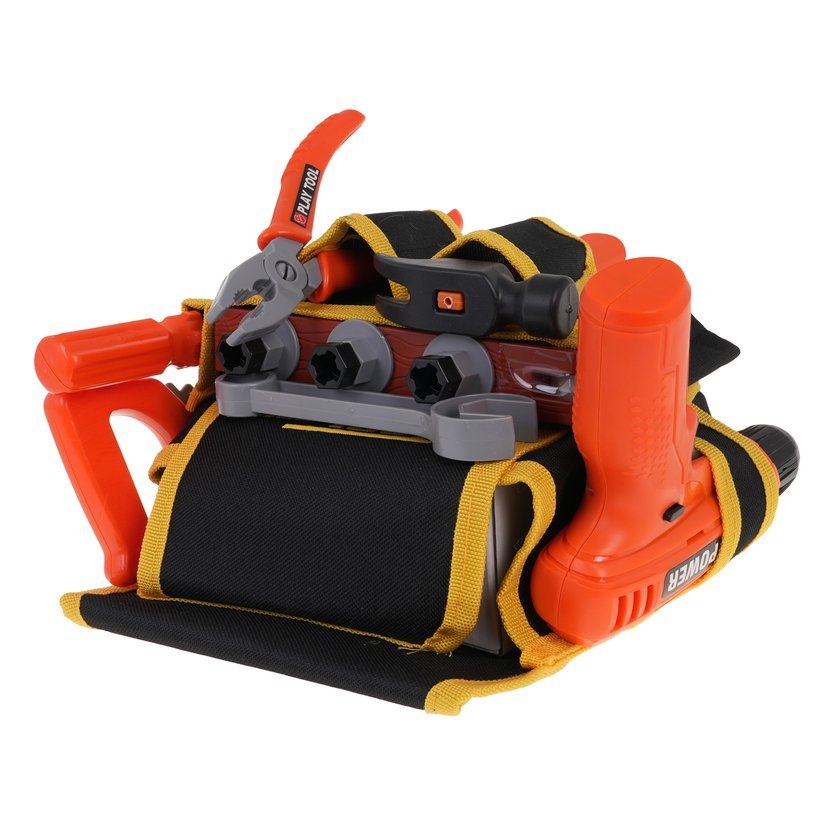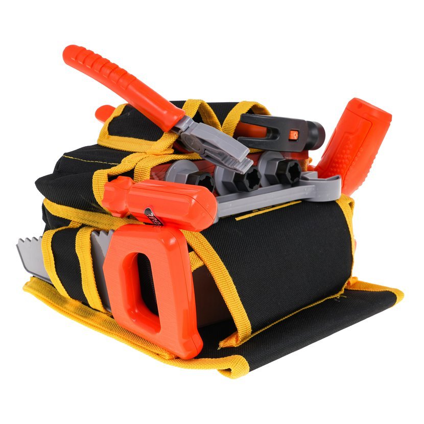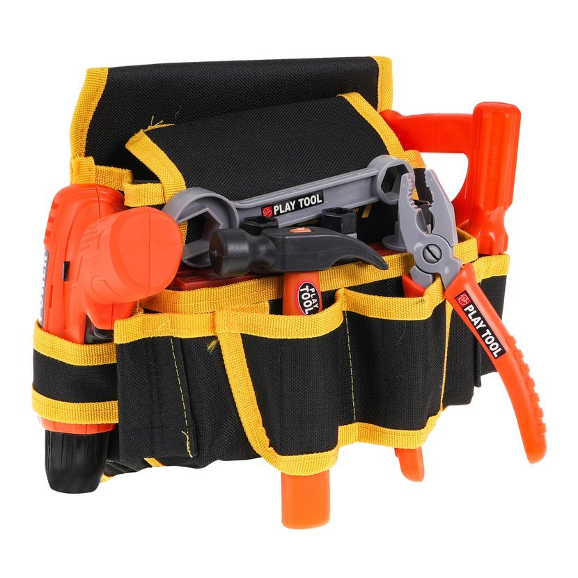 Opasek s kapsami a přezkou je vyroben tak, aby věrně připomínal opravdový pracovní pás. Má hlavní kapsu na suchý zip a několik přihrádek na nástroje. Díky nastavitelnému pásku lze snadno přizpůsobit velikosti dítěte.