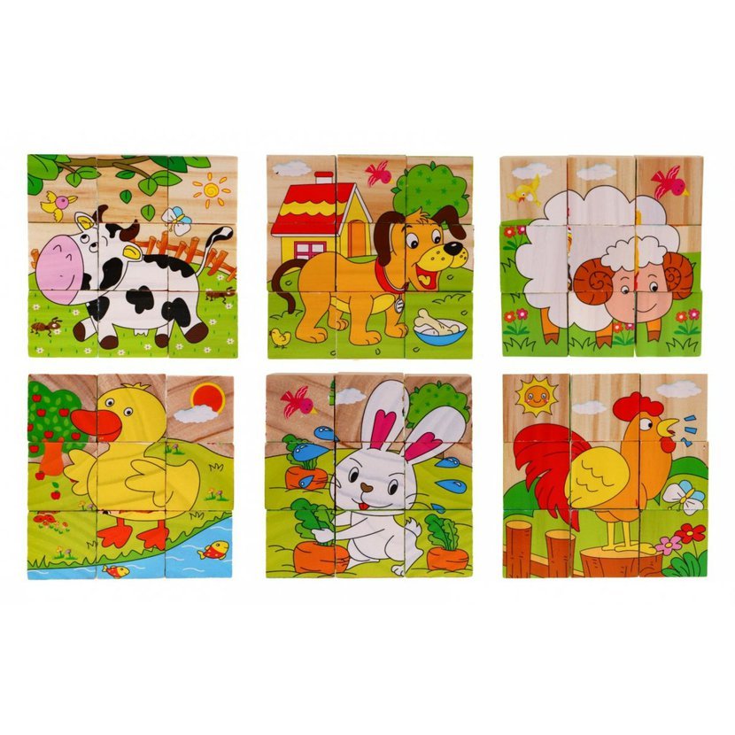 Dřevěné kostičky s obrázky zvířat jsou vhodné pro děti od 18 měsíců. Kostičky jsou bezpečné a velmi odolné. Sestavování kostiček rozvíjí u dětí jejich kreativitu a představivost. Učí také logickému myšlení a pomáhá rozvíjet manuální dovednosti.