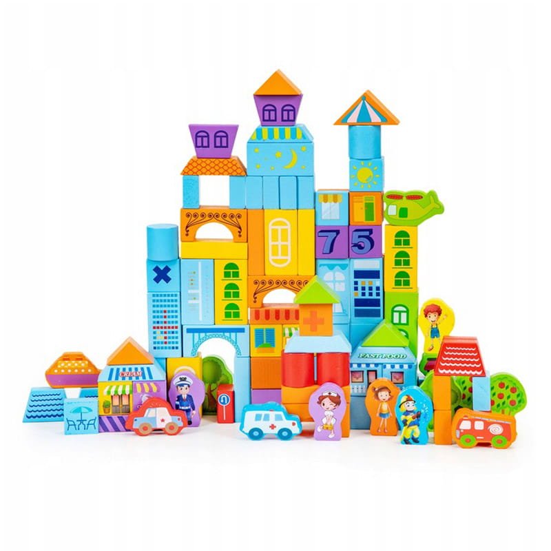 Dřevěné kostičky Život ve městě 100 ks jsou krásným dřevěným hračkami zdobenými motivem města. Každá kostka nese obrázky různých zvířátek, kytiček a stromů, což dodává klasickým barevným kostkám zvláštní půvab. Tyto kostky budou společníkem vašich dětí po dlouhou dobu, díky jejich kvalitnímu provedení a netoxické barvě. Jsou určeny pro děti od 3 let a starší.