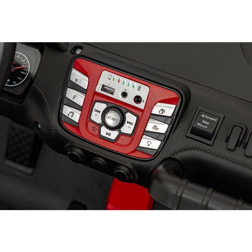 Autíčko je vybaveno pěnovými EVA koly pro tichou a pohodlnou jízdu, sedadlem z eko kůže s bezpečnostními pásy, a hudebním panelem s MP3, USB, AUX, Bluetooth a Rádiem – zábava během jízdy je tak zaručena.