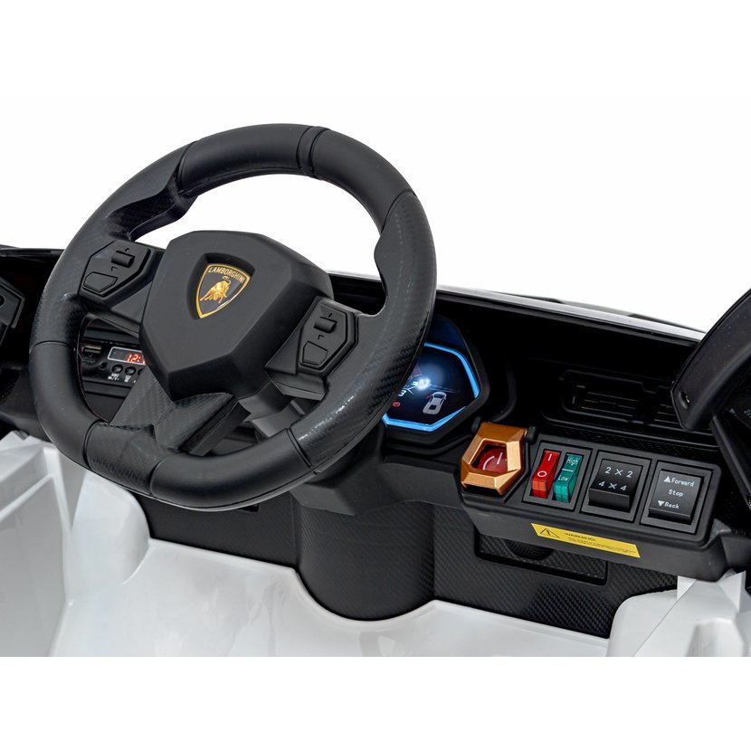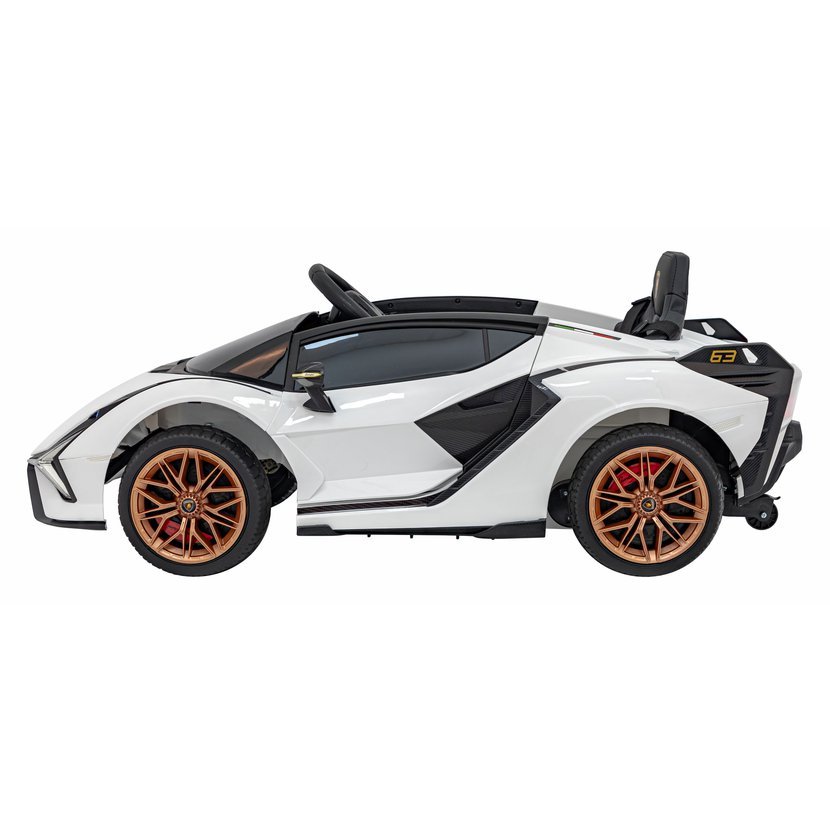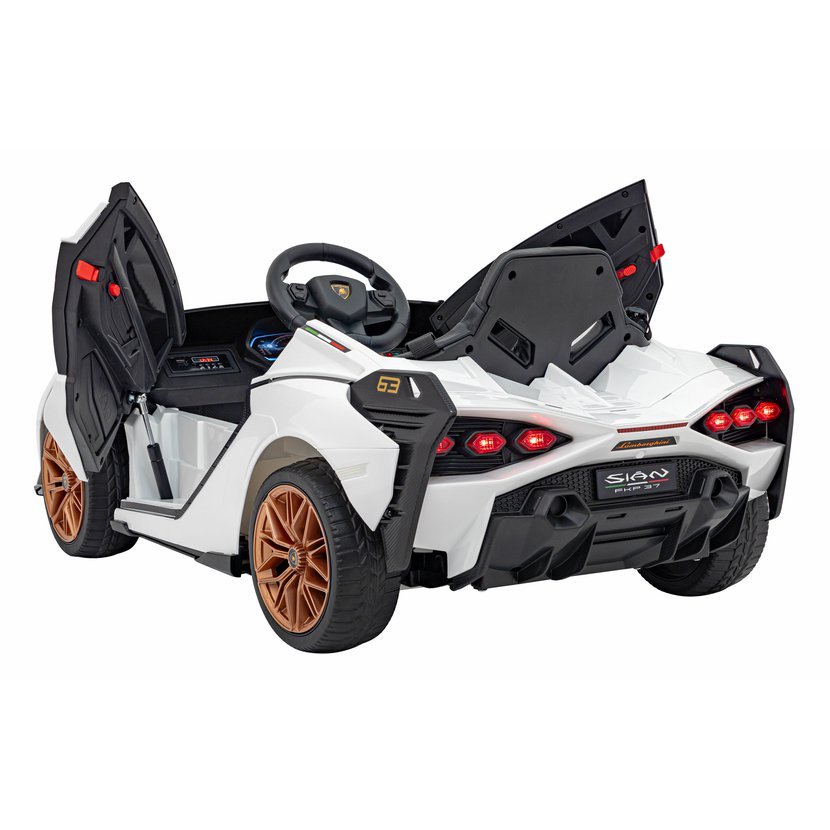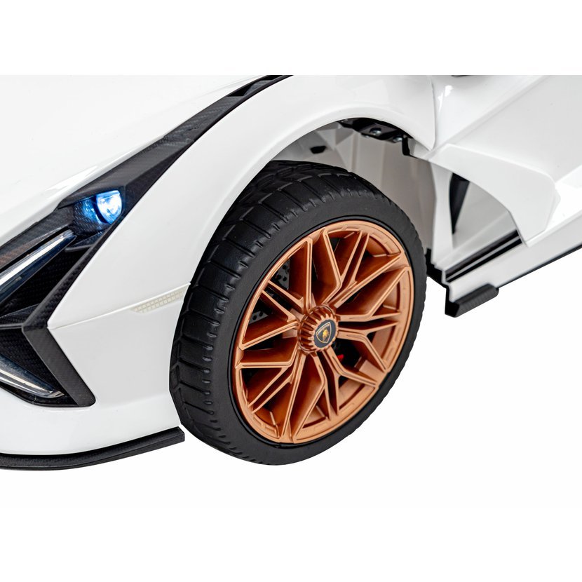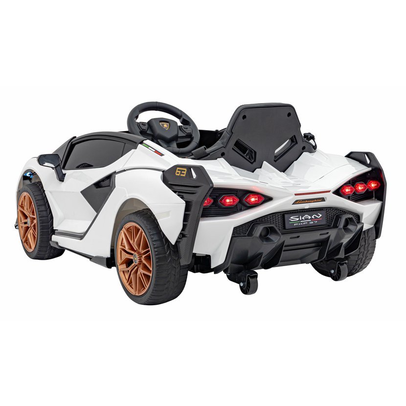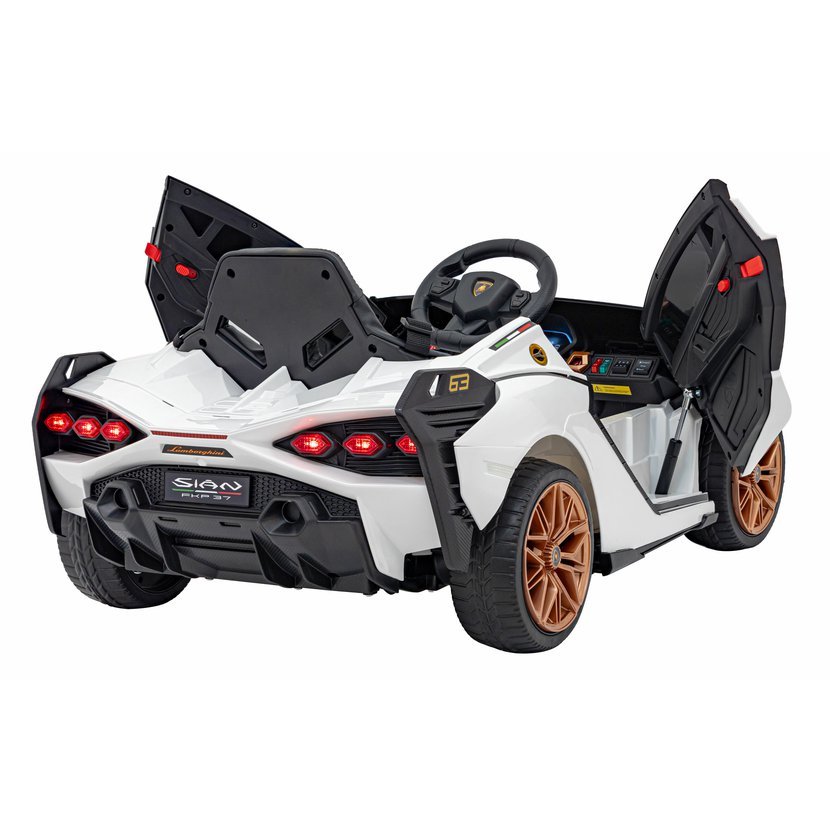 Dětské elektrické autíčko Lamborghini Sian zaujme nejen svým luxusním vzhledem, ale i bohatou výbavou. Díky čtyřem motorům s celkovým výkonem 106W a baterii s kapacitou 12V 7Ah zvládne jízdu po rovných i mírně nerovných površích. O pohodlí se postarají měkká pěnová EVA kola a sedačka potažená ekologickou kůží.