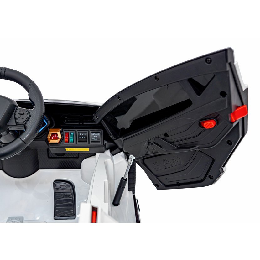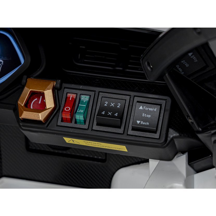 Malé řidiče potěší hudební panel s USB, MP3, AUX a vstupem pro SD kartu, doplněný o klakson a předem nahrané melodie. Autíčko má také přední a zadní LED světla a podsvícenou palubní desku, což umocňuje zážitek z jízdy.