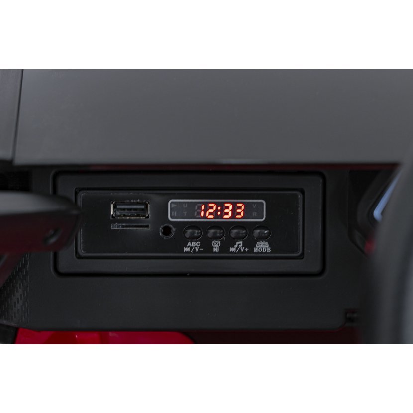 Malé řidiče potěší hudební panel s USB, MP3, AUX a vstupem pro SD kartu, doplněný o klakson a předem nahrané melodie. Autíčko má také přední a zadní LED světla a podsvícenou palubní desku, což umocňuje zážitek z jízdy.