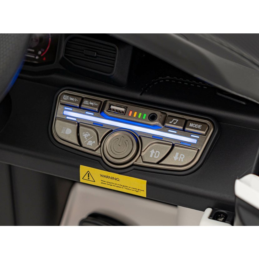 Interiér je vybaven pohodlným sedadlem z eko kůže s bezpečnostními pásy, hudebním panelem s podporou Bluetooth, USB, MP3, AUX i rádia a také tlačítky s melodiemi a klaksonem. Na cestu posvítí LED světla vpředu i vzadu a samozřejmostí je indikátor nabití baterie.
