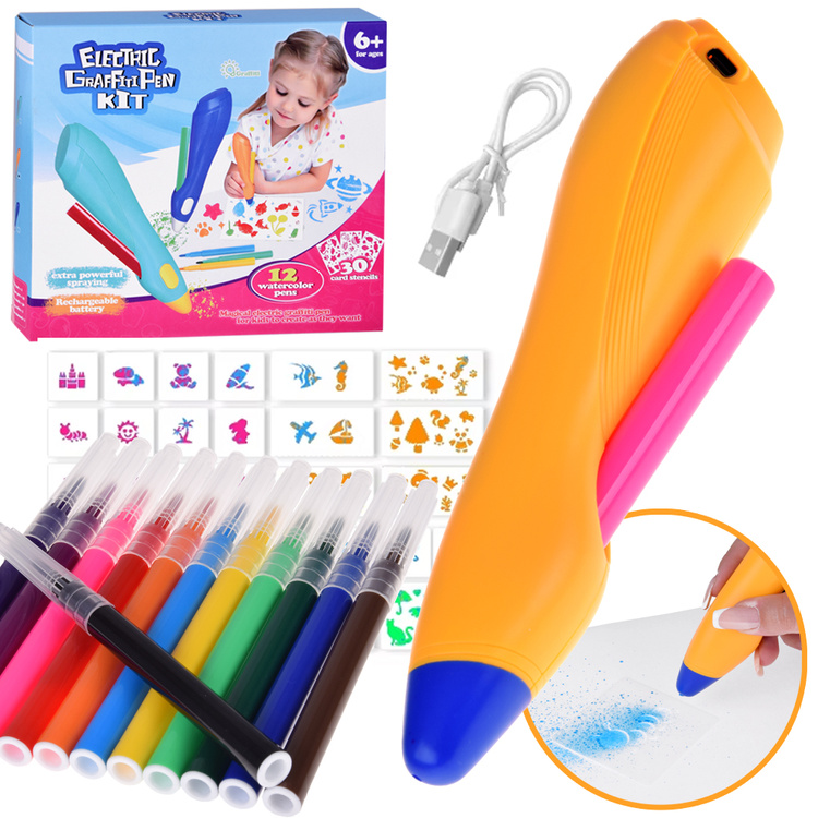 Objevte nový rozměr tvoření! Graffiti Airbrush pero je elektrická kreativní pomůcka, která funguje jako mini sprej a vytváří jedinečný efekt graffiti. Stačí vložit barevný fix, stisknout tlačítko a začít malovat.