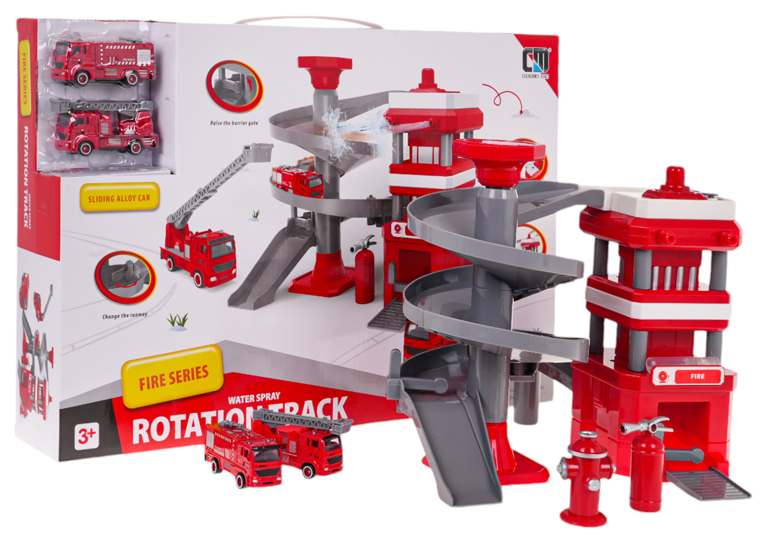 Stanice má garáž s pohyblivou závorou a zjezdovou rampu pro autíčka. V balení jsou dvě kovová hasičská auta, z nichž jedno má pohyblivý a výsuvný žebřík. Děti najdou v sadě také hydrant a hasicí přístroj, takže mohou vytvářet realistické scénáře zásahů.