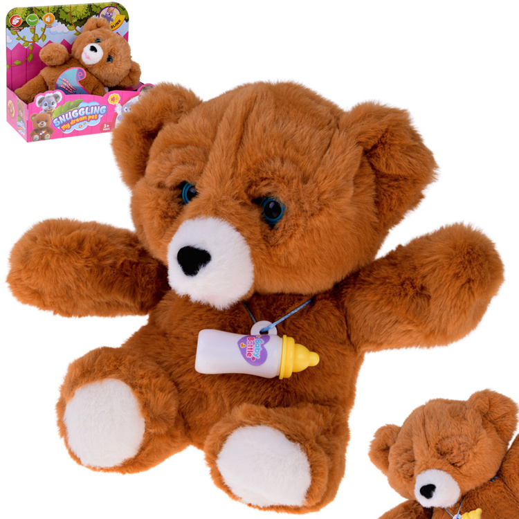 Seznam se s interaktivním medvídkem s lahvičkou, který si získá srdce každého dítěte! Tento měkoučký plyšový kamarád se chová jako skutečné medvídě – směje se, pláče, vydává zvuky při pití, posílá pusinky a reaguje na pohlazení.