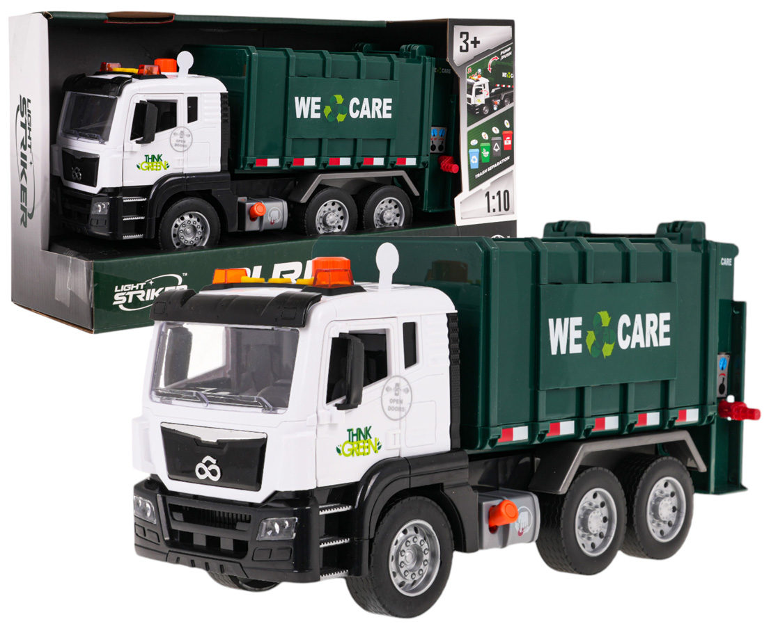 Realistická popelářská souprava s kontejnery, zvuky a světly – zábavná i poučná hračka pro děti, které milují užitkové vozy a chtějí se naučit základům třídění odpadu.