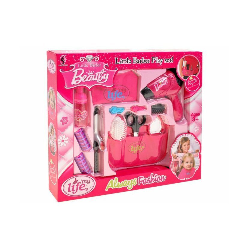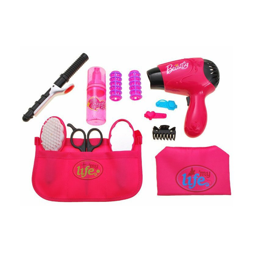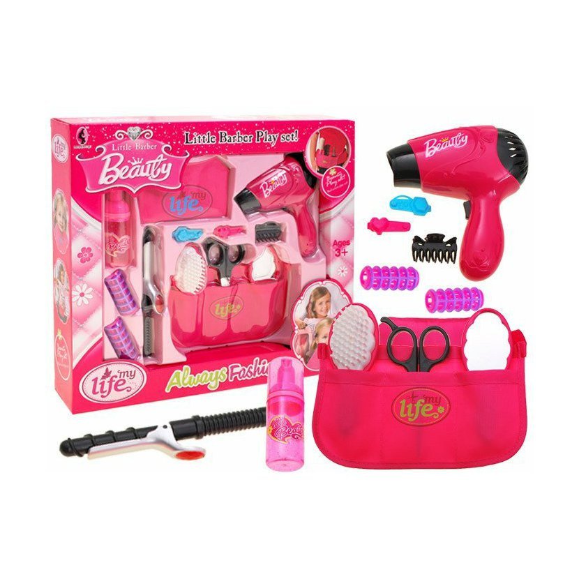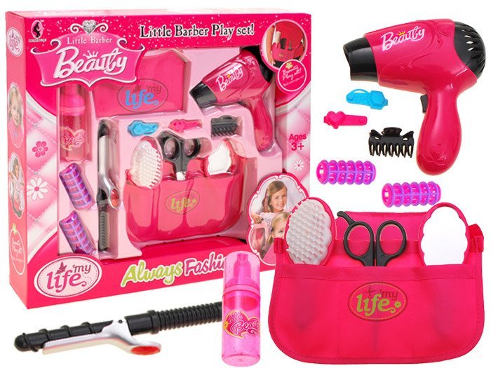 Nádherný kadeřnický set pro malé vlasové stylisty. Vaše děti se díky kadeřnické sadě naučí zručnosti a rozvinou svojí představivost. Tato sada zabaví, jak malou kadeřnici tak její kamarády. Vaše děti se zaručeně zabaví na spousty hodin. Sada je vyrobena s plastu v růžové barvě. Sušička je funkční a opravdu suší vlasy. Hračka je určena dětem starších 3 let a má certifikát CE.