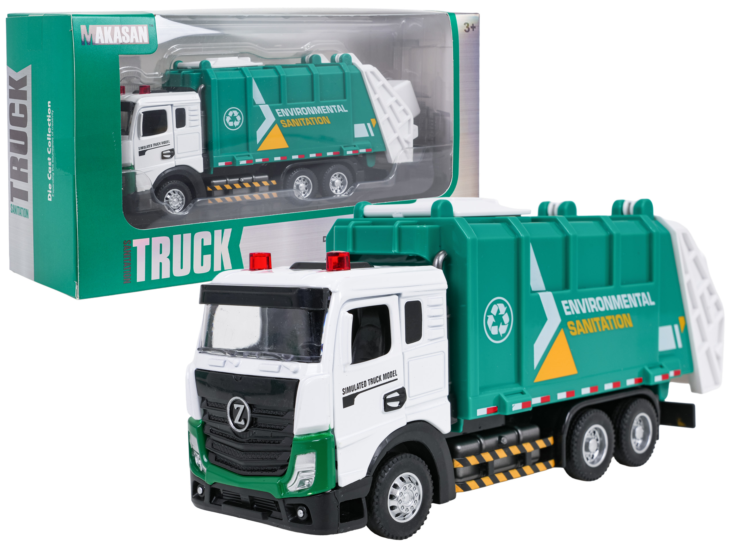 Realistická popelářská souprava s kontejnery, zvuky a světly – zábavná i poučná hračka pro děti, které milují užitkové vozy a chtějí se naučit základům třídění odpadu.