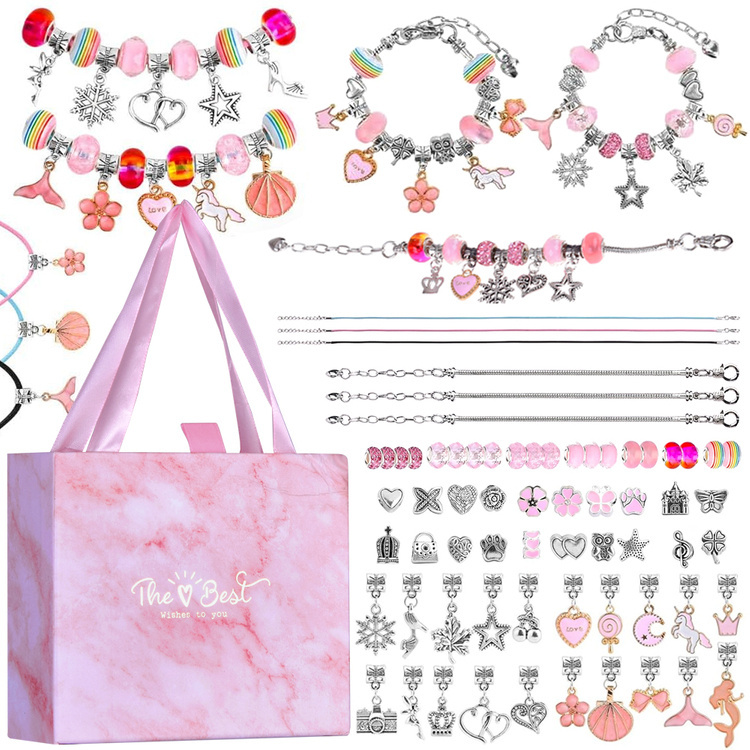Rozvíjej fantazii a zrnitostní schopnosti s kreativní sadou na výrobu náramků CHARMS. Tento stylový set v krásném stříbrném provedení s růžovými a zlatými detaily umožňuje dětem navlékat korálky a přívěsky podle vlastní fantazie, vytvářet jména, nápisy nebo originální vzory.