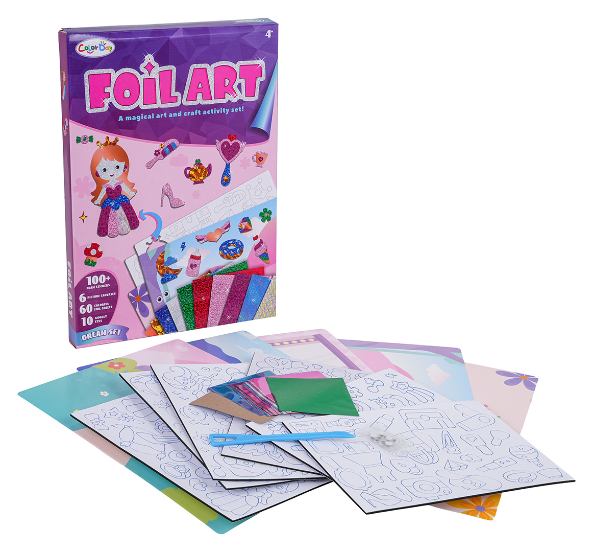 V sadě najdete pěnové samolepky, barevné třpytivé papíry, šablony s pozadím a praktickou plastovou tyčinku pro sejmutí samolepek. Dítě podle předlohy (nebo vlastního nápadu) lepí jednotlivé dílky na obrázek a vytváří tak krásné, barevné scény.