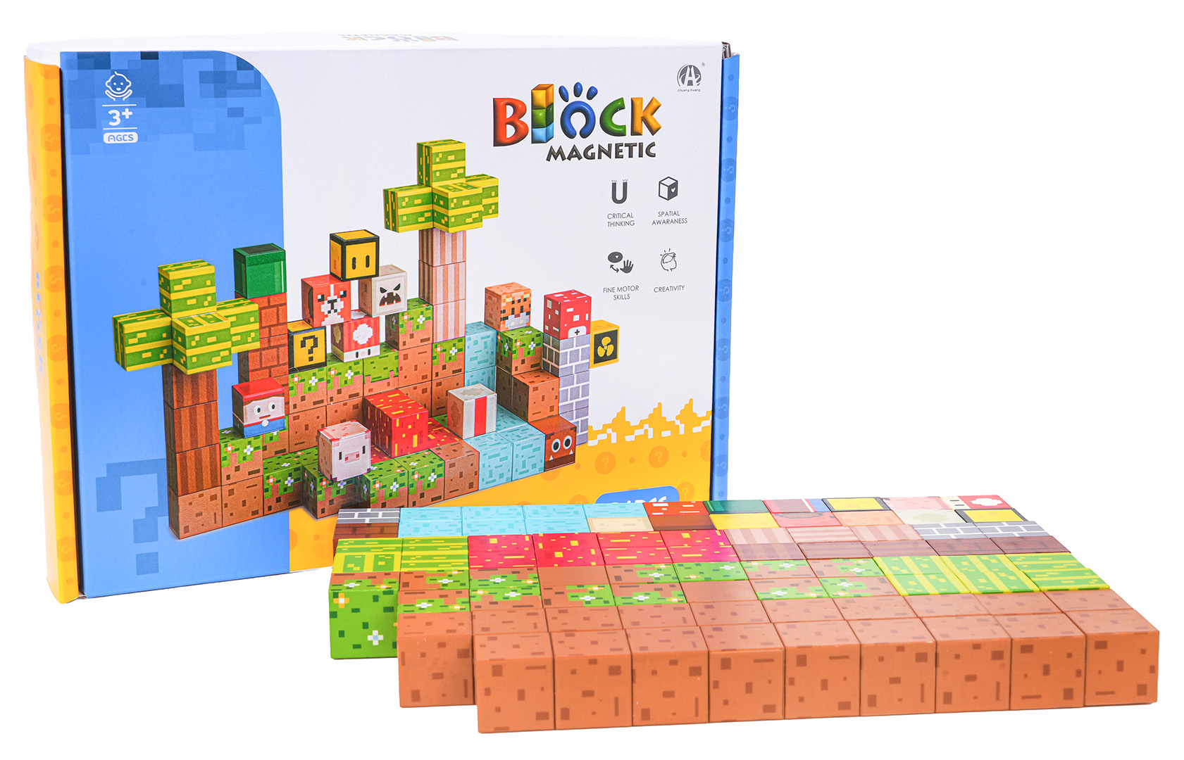 Kostky jsou vyrobeny z kvalitního, bezpečného plastu a vybaveny silnými neodymovými magnety, které zajišťují pevné a stabilní spojení. Snadno se spojují i rozpojují, takže hraní je zábavné a nenáročné.