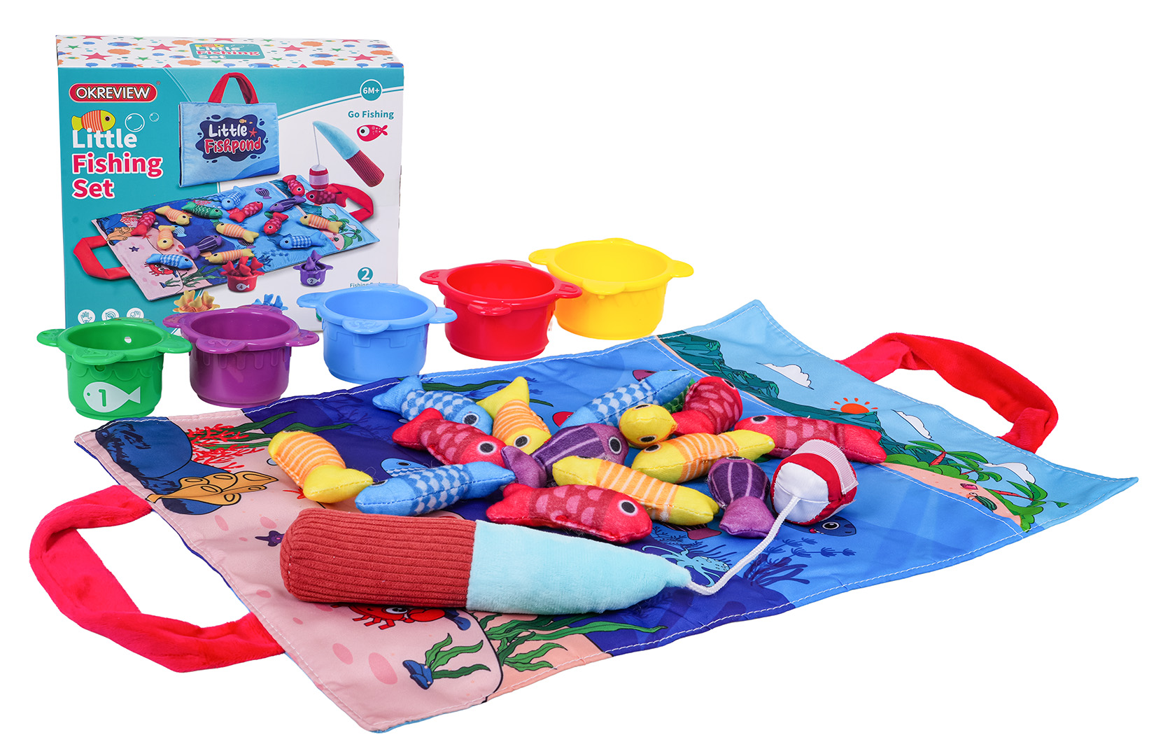 Tato měkká senzorická sada na chytání rybiček poskytuje malým dětem zábavnou a bezpečnou formu hry, která rozvíjí jejich smysly, logiku i jemnou motoriku.