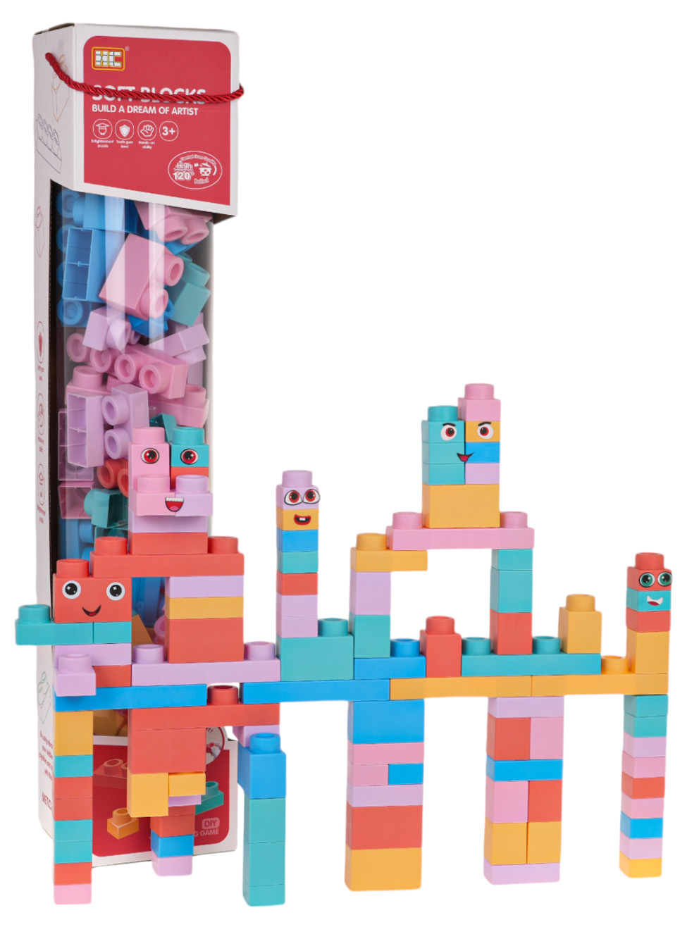 Parametry produktu Měkké stavebnicové kostky pro děti – 100 ks