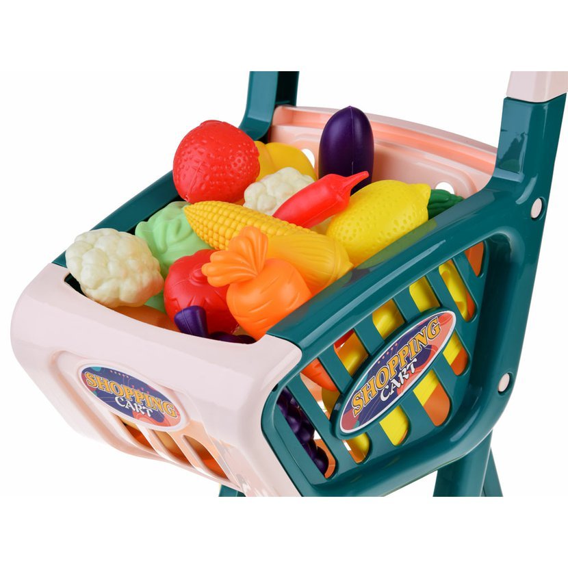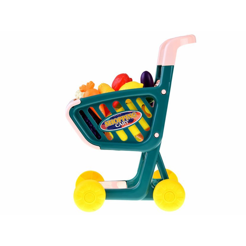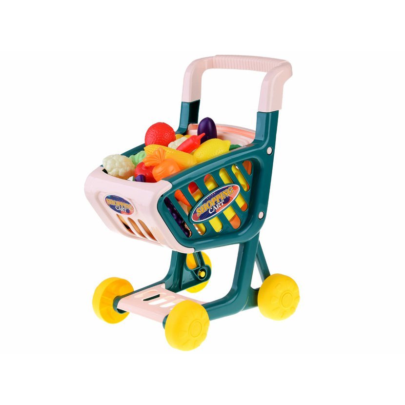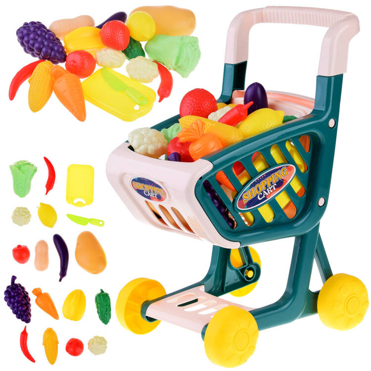 Velký nákupní vozík plný ovoce a zeleniny je ideálním vybavením pro hru na obchod. Děti rády napodobují dospělé při každodenních činnostech, takže tento super vozík na zeleninu se bude líbit každému malému dítěti. Vozík je vyroben z plastu, má široká kolečka a pohodlnou rukojeť pro jeho vedení. Zelenina/ovoce jsou rovněž vyrobeny z plastu v atraktivních barvách.