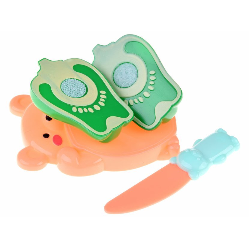 Zelenina/ovoce jsou rovněž vyrobeny z plastu v atraktivních barvách. Jsou spojeny suchým zipem, takže si vaše dítě bude moci hrát na jejich krájení.