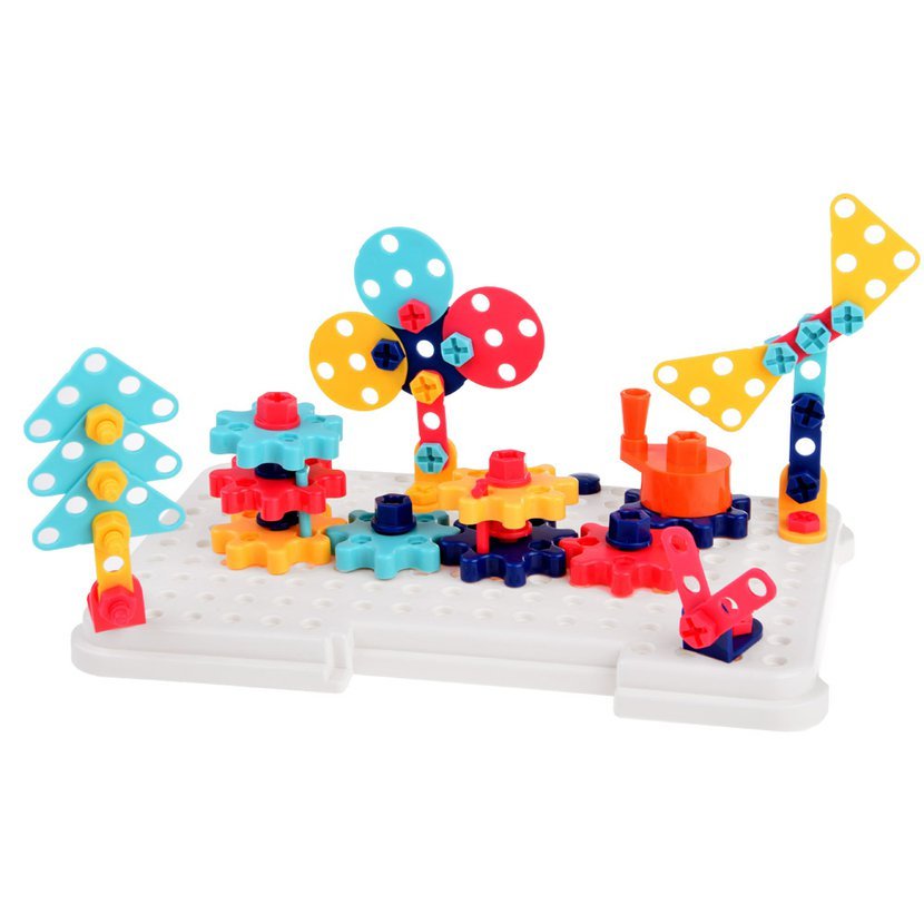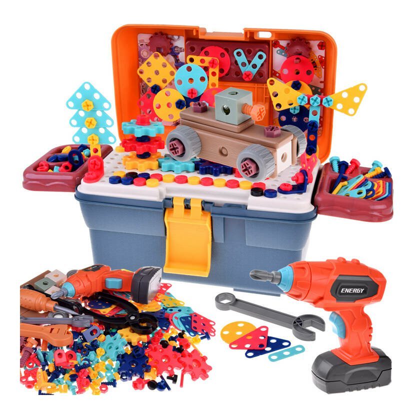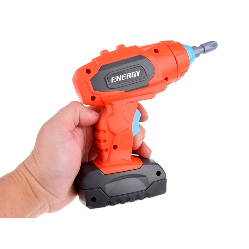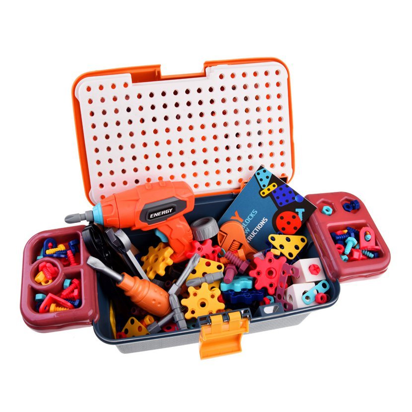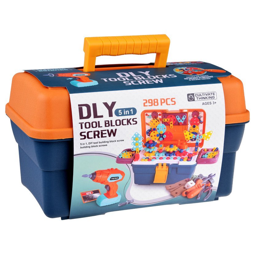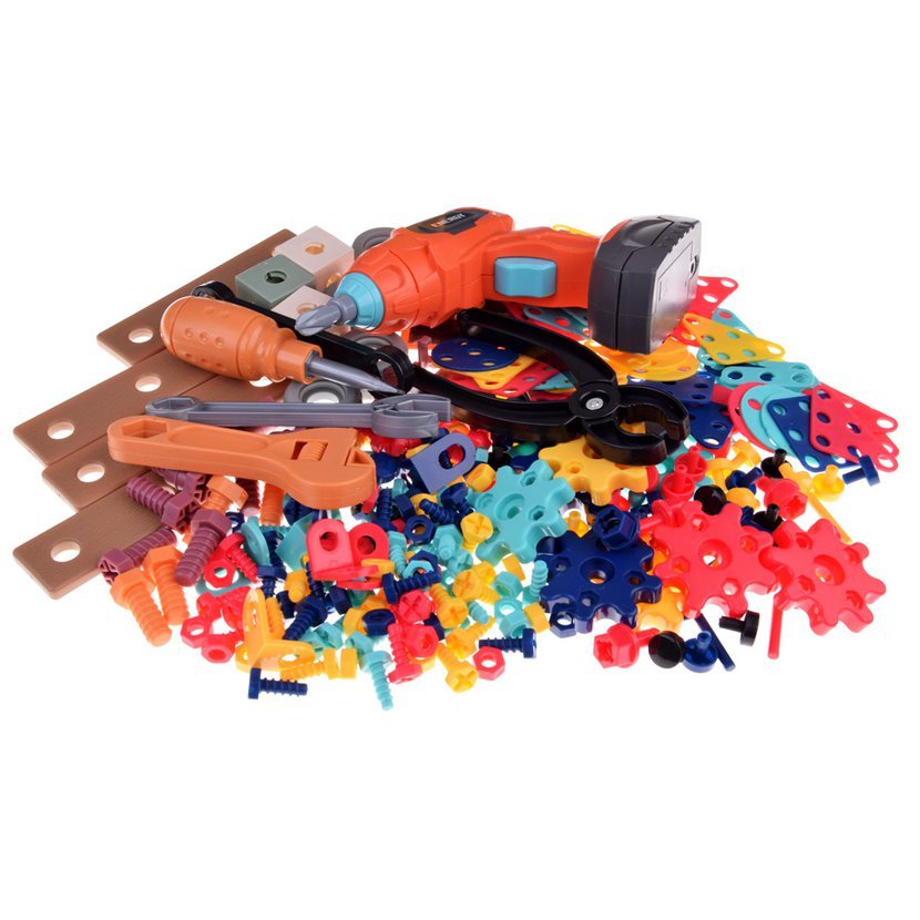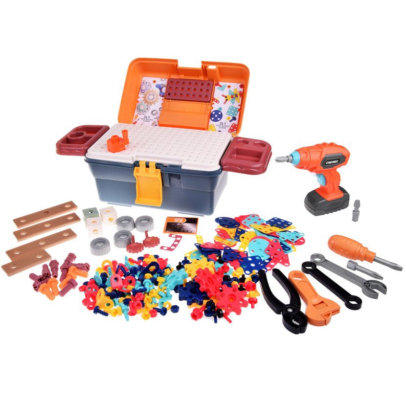 Bohatě vybavený pracovní box s nářadím, šrouby, vruty a torzním příslušenstvím ocení každý mladý kutil. Šroubování, opravování a vytváření nových 3D konstrukcí poskytne mladému kutilovi spoustu kreativní zábavy. Box má pracovní plochu, poličky na příslušenství, zkrátka vše, co je v dílně potřeba. Barevná ozubená kola a šrouby se jednoduše přišroubují na desku s otvory a vznikne pohyblivá stavba. Hračka umožňuje stavět různé konstrukce a návrhy, např. auto, vrtulník, zvíře atd. Součástí sady je brožura s nápady. Hra u dítěte rozvíjí tvůrčí myšlení, rozpoznávání barev, kombinování barev a manuální dovednosti.