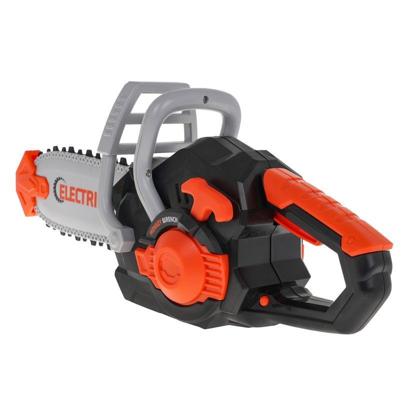 Sada motorové pily se zvukovými efekty a ochrannými brýlemi je vhodná pro děti od 3 let. Pila je pro děti zcela bezpečná. Byla vyrobena z nejkvalitnějšího plastu a nemá žádné ostré hrany. Řetěz je vyroben z gumy. Pilu spustíte stisknutím tlačítka ve spodní části hračky a poté stisknutím oranžového tlačítka, které je umístěno na spodní části rukojeti pily. Poté uslyšíte zvuk zapálení a chodu motoru. Pokud naopak stisknete a podržíte oranžové tlačítko, řetěz se poté začne otáčet a vydávat zvuky řezání. Součástí balení jsou ochranné brýle s gumičkou. Hračka je napájena tupu 3 x AA 1,5V bateriemi, baterie nejsou součástí balení.