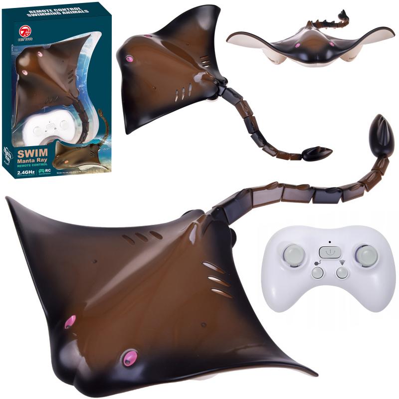 Díky ovládání na frekvenci 2.4 GHz je řízení stabilní a přesné. Rejnok se pohybuje plynule všemi směry a jeho flexibilní ocas zajišťuje realistické manévrování.
