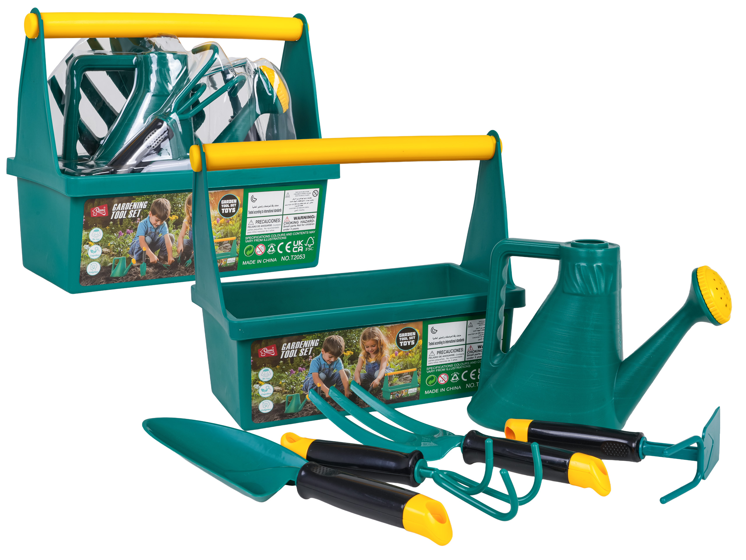 Součástí sady jsou bezpečné plastové nástroje, které vypadají jako skutečné, ale jsou lehké a přizpůsobené dětským rukám. Děti mohou hrabat, zalévat, kopat i sázet – přesně jako dospělí!