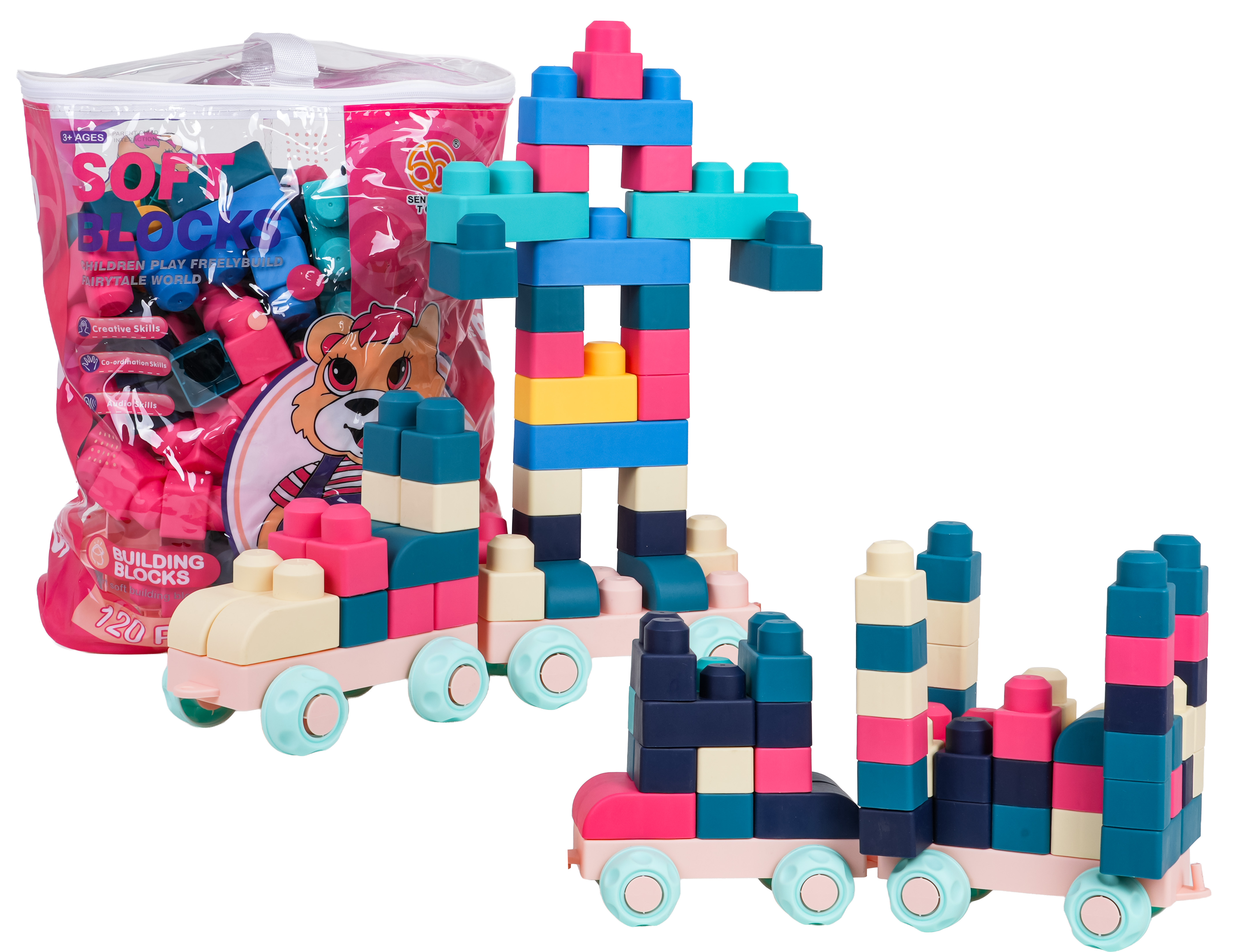 Sada měkkých stavebnicových kostek 120 dílků