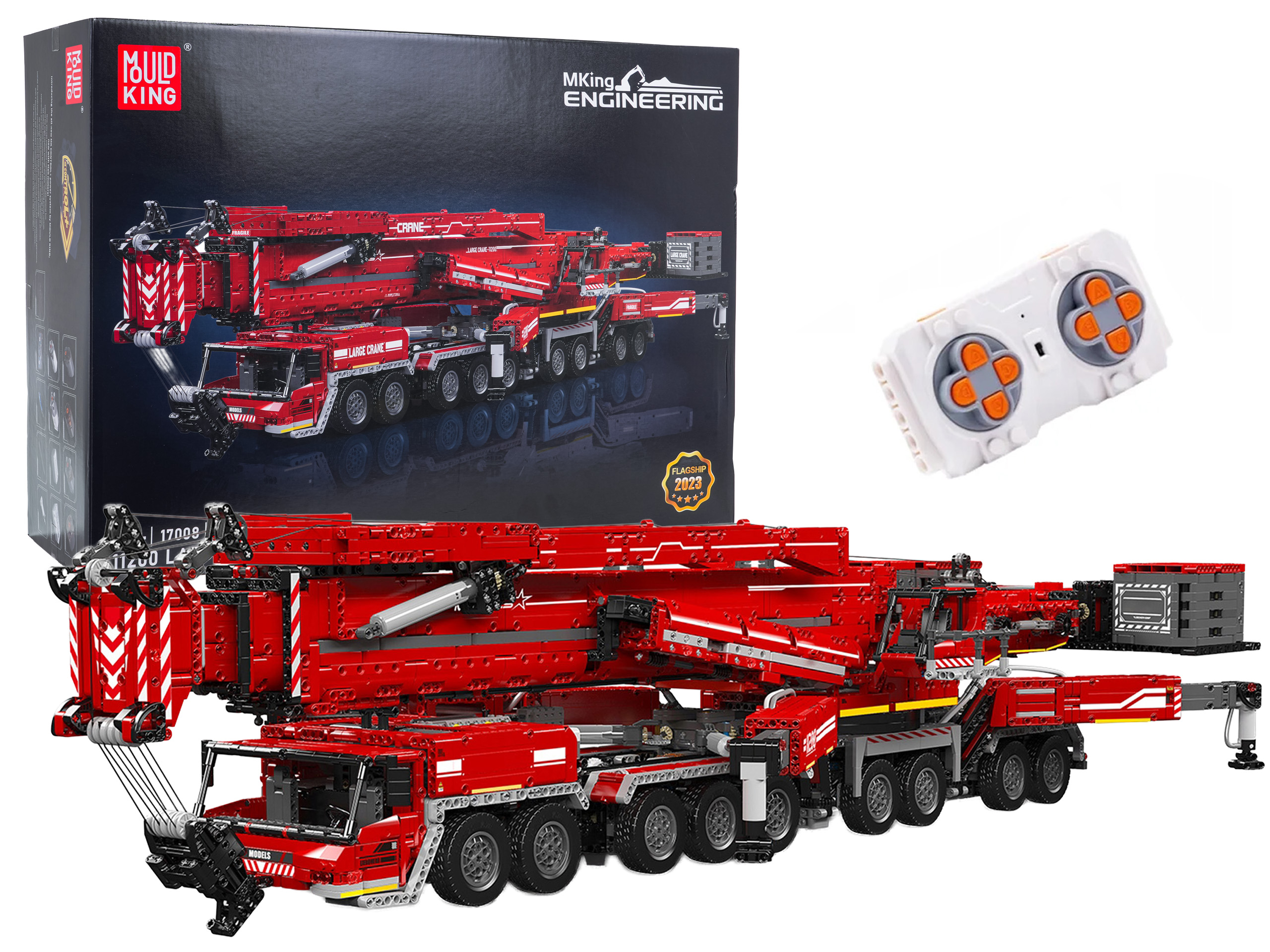 Stavebnice Mould King Jeřáb RC (8506 dílků) je jedním z nejpropracovanějších modelů značky. Tento monumentální červený jeřáb nabízí věrně zpracované detaily a plně funkční konstrukci řízenou na dálku.