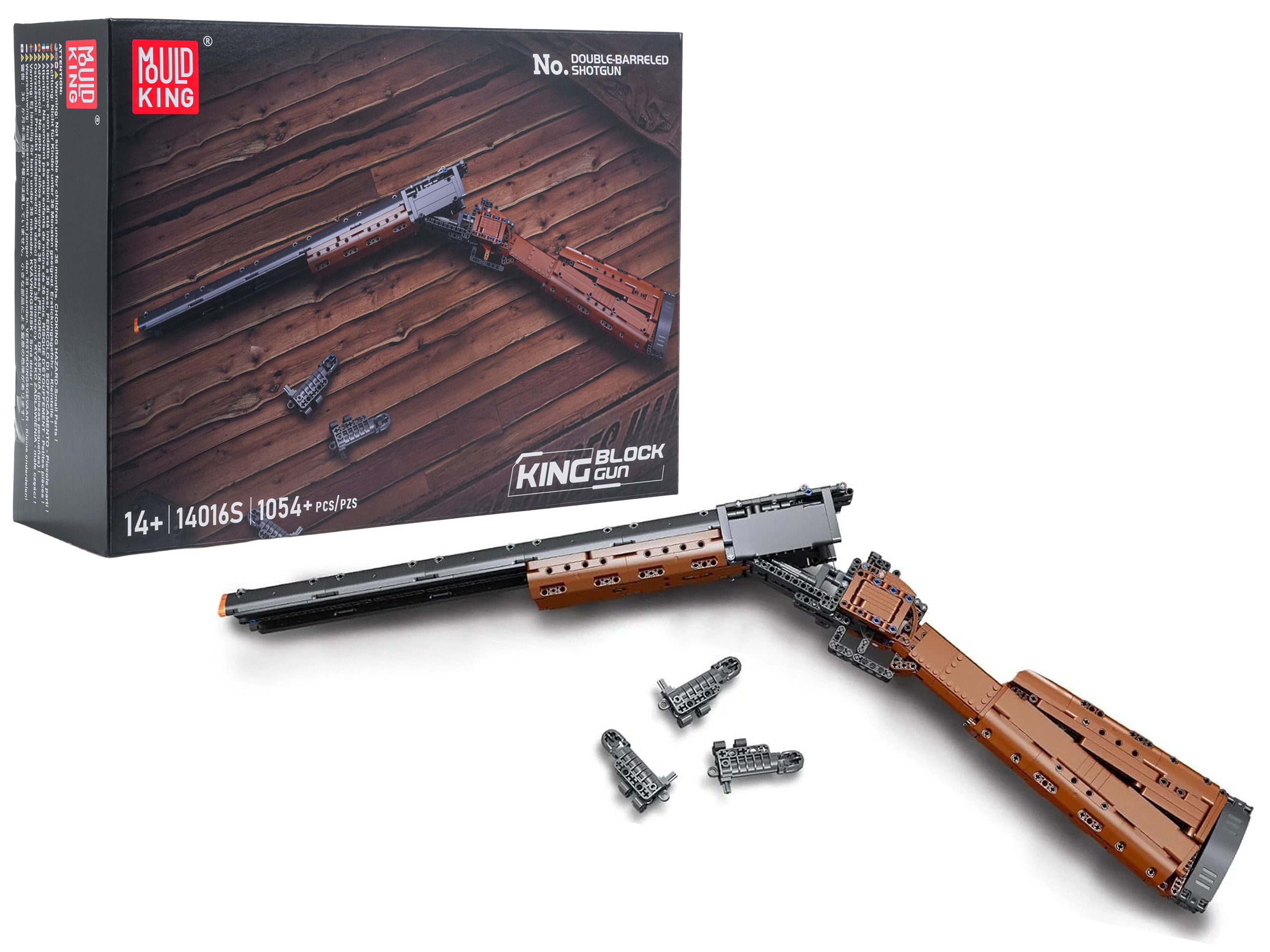 Detailní stavebnice pro starší děti (od 14 let). Postavte model karabiny s dvojitou hlavní — sada obsahuje 1054 dílků a 2 projektily. Určeno jako model a sběratelský kousek, nikoli jako skutečná zbraň.