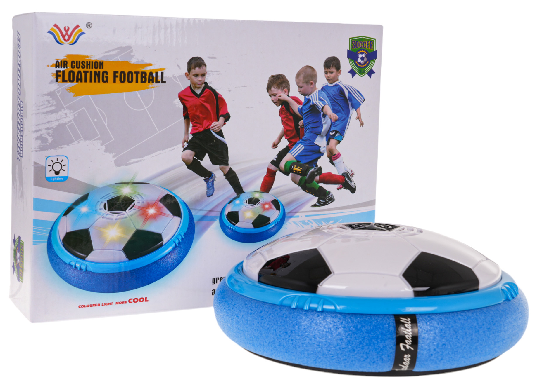 Po zapnutí se rozsvítí barevnými světly, což dodává hře ještě větší atraktivitu. Díky měkkému pěnovému okraji je míč bezpečný pro hru v interiéru – nepoškodí nábytek ani stěny. Je lehký, snadno přenosný a děti si s ním užijí spoustu pohybu i během deštivých dnů.