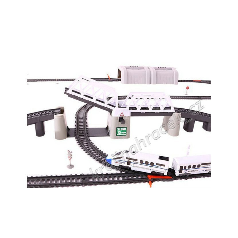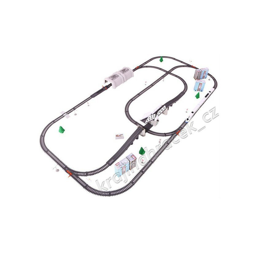 Nabízíme vám velkou sadou - vláčkodráhu. Tato ohromná sada jistě udělá radost každému milovníkovi vláčků. Postavte si doma v pokojíčku vlačkodráhu a dovolte svému dítěti řídit vlak, jistě se nebude moci odtrhnout. Celková délka kolejiště je 170cm x 98,5 cm. V sadě najdete koleje, vagony a doplňky. Vláček je skoro jako opravdový. Vhodná věková kategorie od 5+ let. Výrobek má evropský certifikát bezpečnosti CE.