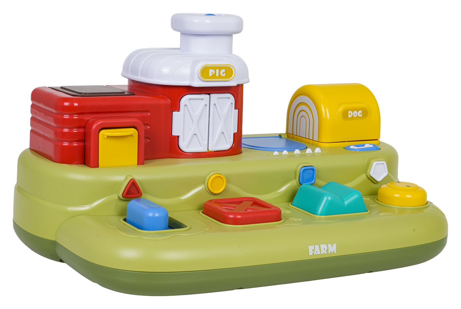 Nad tlačítky jsou další spínače, které přehrávají melodie, odgłosy zvířátek a zvuky otevírání boxů. Díky tomu hračka zapojuje zrak, sluch i hmat dítěte a rozvíjí jeho motoriku i představivost.