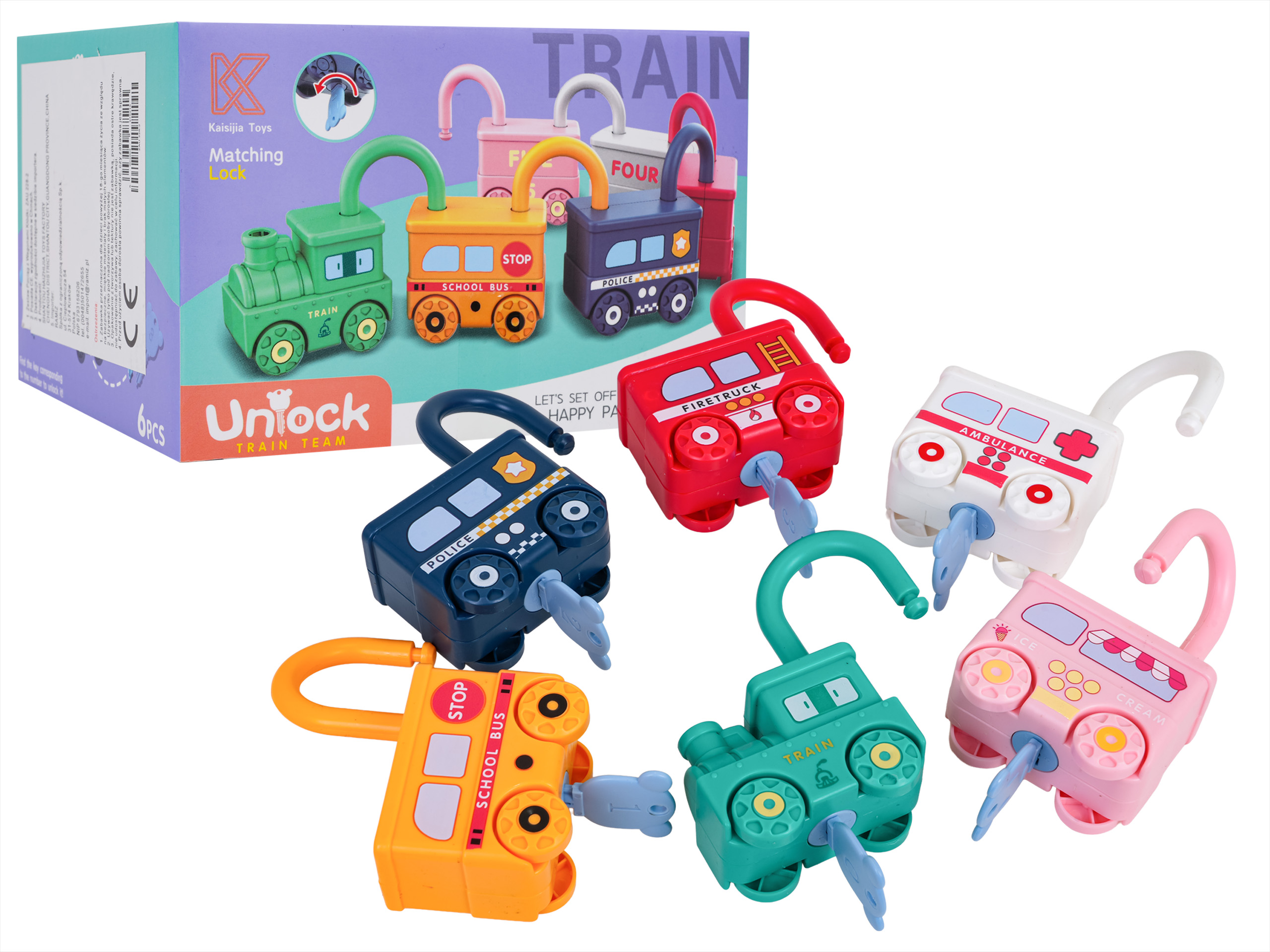 Každý vagónek má tvar barevného zámku a je označen číslem od 0 do 5 a anglickým názvem vozidla (Train, School Bus, Police, Firetruck, Ambulance, Ice Cream).