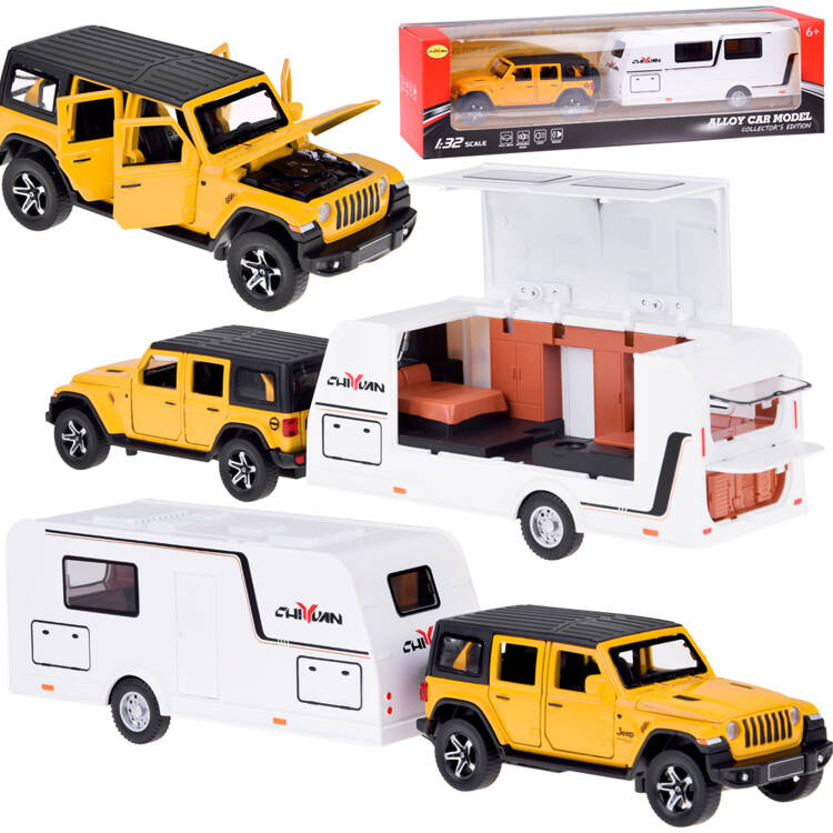 Terénní auto s přívěsem – karavanem je dokonalá hračka pro děti, které milují auta, cestování a dobrodružství! Realisticky zpracovaný kovový teréňák se světly a zvuky v kombinaci s otevíracím karavanem vytváří perfektní sadu pro kreativní hraní i sběratelskou vitrínu.